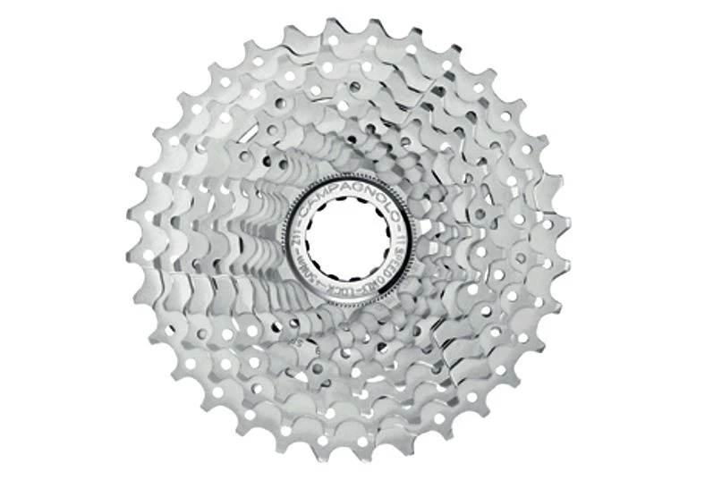 acier – finition nickel-chrome – supports porte-pignons en alliage léger pour les deux derniers groupes de trois pignons – synchronisation 11s – géométrie des dents 11s – écrous 11s en alliage leger, filetage 27×1