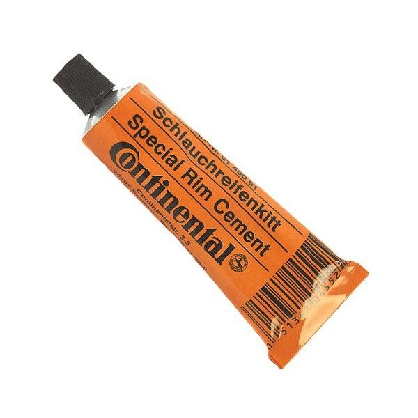 Gratter le fond de la jante et le nettoyer avec de l’essence ou un produit similaire. Appliquer une fine couche régulière de colle à boyau Continental sur le fond de la jante et la bandelette de fond de jante. Laisser sécher au moins 15 minutes mais au mieux 24 heures. Appliquer ensuite une seconde couche sur le fond de la jante, monter le boyau, le gonfler fort et le centrer.
